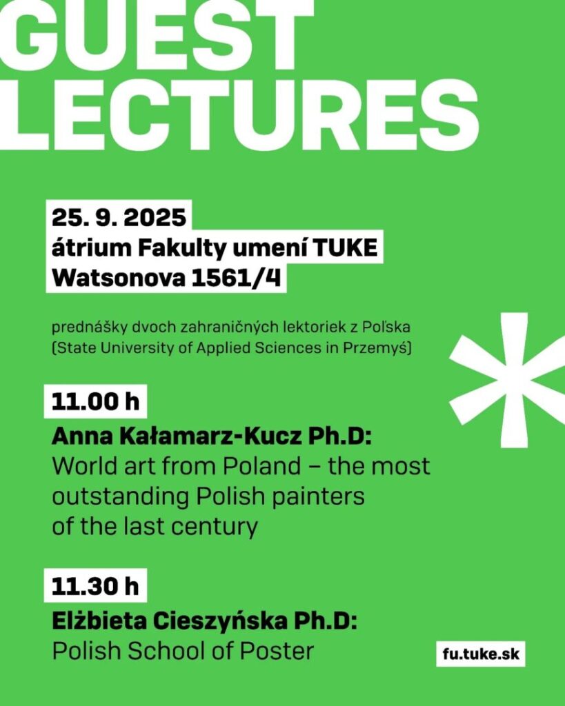 dr Elżbieta Cieszyńska – uczestniczyły w wymianie akademickiej na Wydziale Sztuki Uniwersytetu Technicznego w Koszycach. Podczas wizyty zaprezentowały cykl wykładów poświęconych polskiej sztuce i projektowaniu.